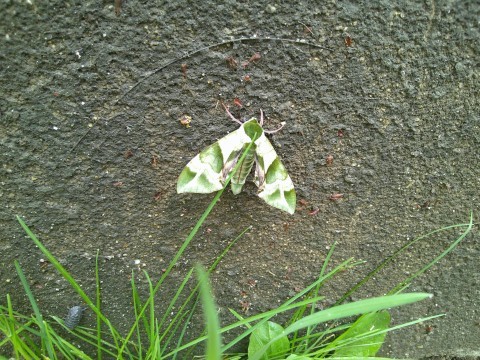 校内に戻ろうとしたら校舎に見たことのない蝶々(ガ)を見つけました。