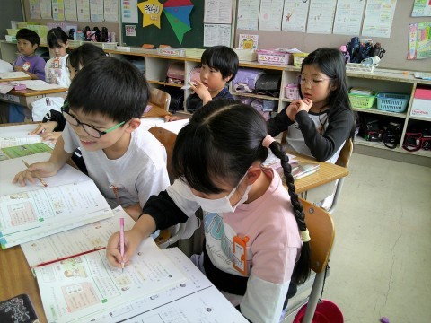 3年1組 算数 公開日 2026/04/21 更新日 2026/04/21 3年生 0のつくかけ算を学んでいました。10回ジャンケンをします。何で勝ったかをプリントの裏に残していきます。「勝った!」と喜んでばかりはいられません。何で勝ったか,今は何回めかを,振り返ってわかるように書けるかな? それも含めてあとで,みんなで意見を出しましょうね。 +5