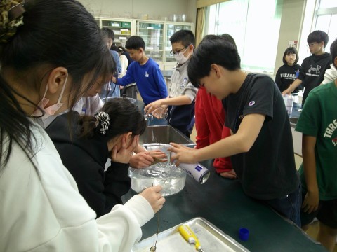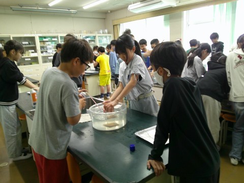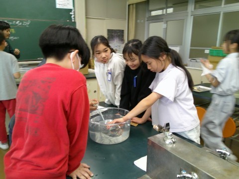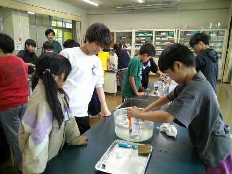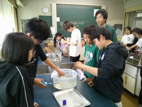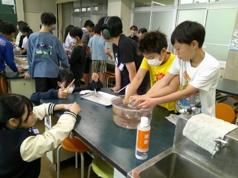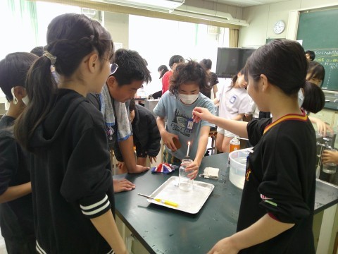 その中で,燃やす働きのある気体を調べていました。まずは,窒素から・・・