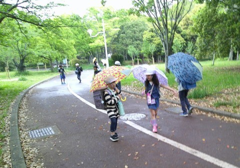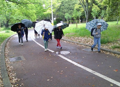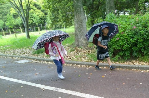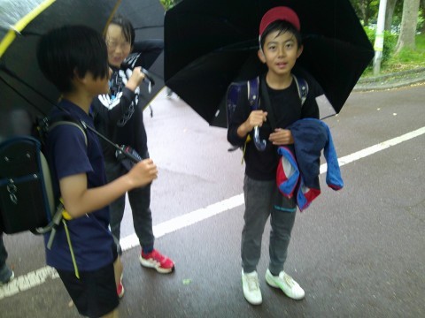 傘もささずに頭にのせてバランスをとっている児童も・・・今のブームなのかもしれません。