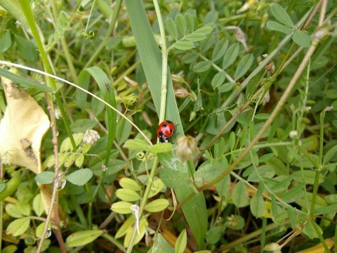 中庭にテントウムシがたくさんいました。こんなにたくさん見つけるとうれしくなります。