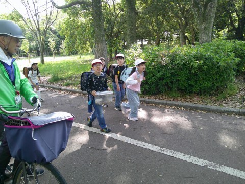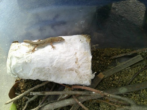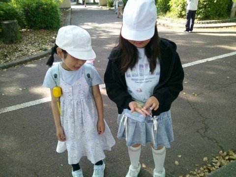 大事に飼育ケースを持って来ています。まるまる太ったカナヘビくんはとても元気なんだそうです。そして昨日みつけたカナヘビくんはしっぽが少し短かくて小さいです。一緒に住んでもケンカをしていないとのことです。