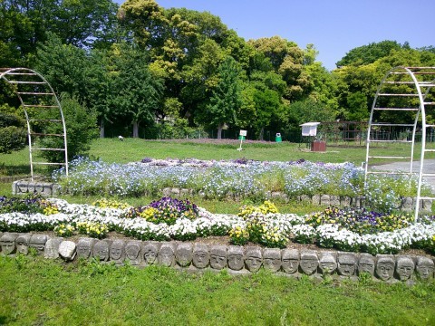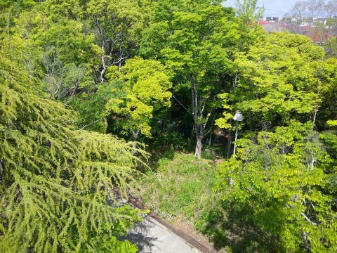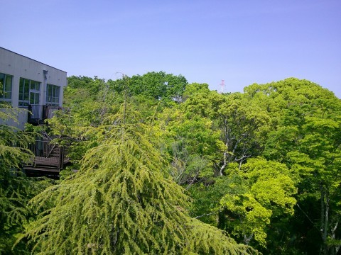 3階から撮影した本校です。とても自然豊かな学校に思えます。体育館前の花壇もそして向こうに見えるレンゲもとてもきれいです。