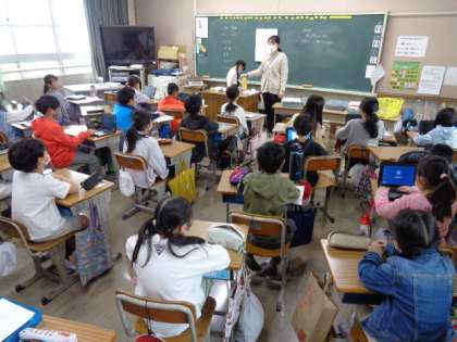 4の1,4の2ともに朝の時間の様子です。提出された宿題の頑張り紹介やタブレット充電について話し合っています。