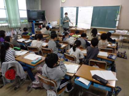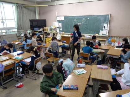 2の1は国語の漢字学習が終わり教科書の準備をしています