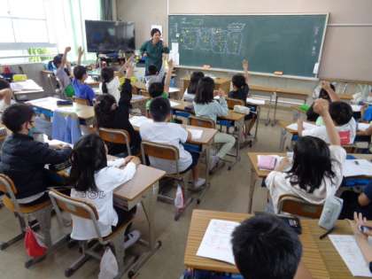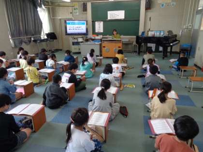 4の2は音楽で「歌のにじ」をリコーダーと合唱しています
