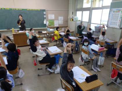 4の1は外国語活動の時間です 4の2はテストの時間ですが、いったん背伸びしてリラックス