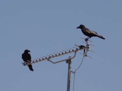 子どもたちの話声に、カラスさんたちもやってきて、「何をしているのかな?」と見ているようでした。