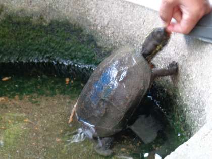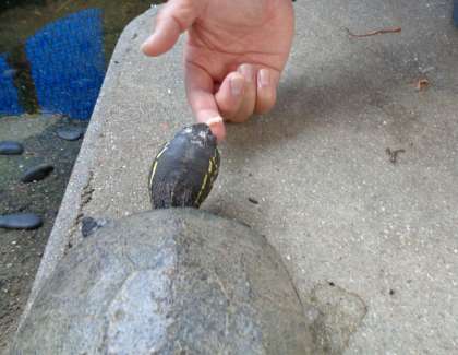 人懐っこいカメさんで、顔を見ると近づいてくれ、そして見送ってくれます。