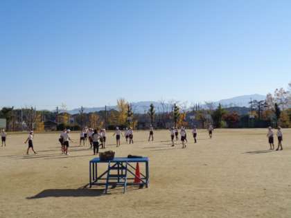 6の1は運動場で体育の時間です。大繩がありますよ、新記録めざしてがんばりましょう!