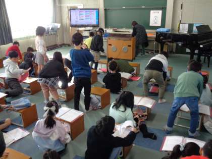 3の1は音楽の時間です。リズム学習「3じのおやつは…♪」が始まるようですよ。