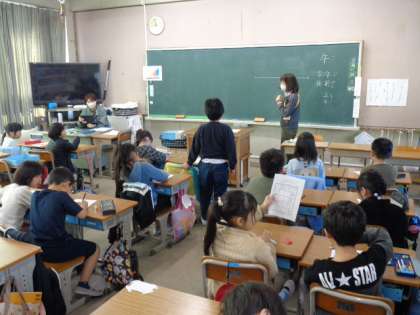 2の1は算数でかけ算九九の計算練習タイムでした。