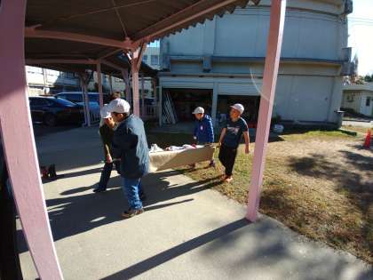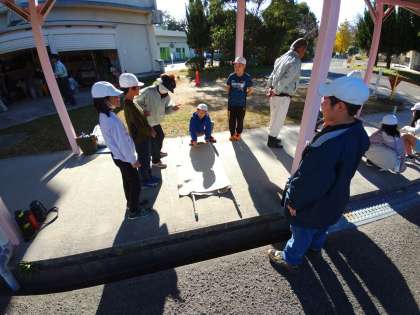 毛布担架の体験です 貴重な経験です
