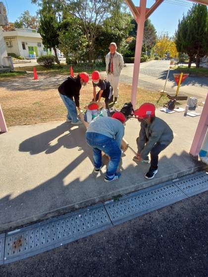 毛布担架です 自分のためみんなのために確実にできるようになりましょう 「みんなは地域の力です!」