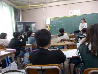 4年2組は算数です。1つの式で表そうと積極的に意見を出し合い、様々な見方を大切にした授業を展開しています。