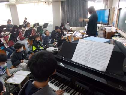 6年1組は音楽です。“情熱大陸”の合奏練習をしていました。完成が楽しみです♪