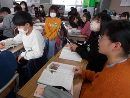 6年2組は国語です。“柿山伏”を読んで大まかな話の内容をわかりやすく説明していました。またまわりの子どもの話の聞き方もさすがでした!