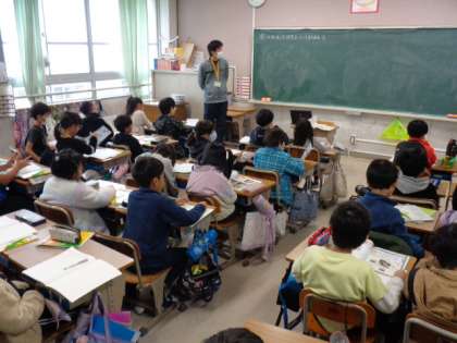 3の1は社会の学習で消防の仕組みについて学習しています 3の2理科の学習を始める準備をしています