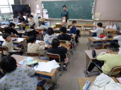 4の1はノートやプリントを配ってもらいながら体育カードをまとめていました