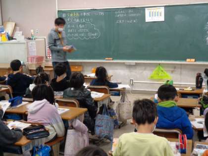 3の1は図工の時間に面白そうなコリントゲームをトントン作っていますよ