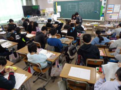 6の1は卒業文集がいよいよまとまってきたようですよ。 6の2は習字の時間です。