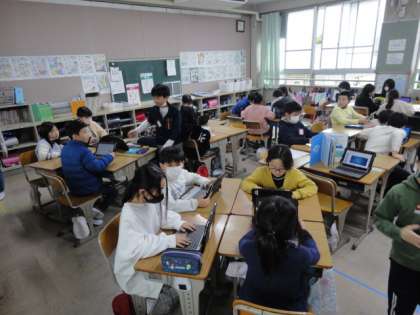 4の1と4の2は総合的な学習の時間で取り組んでいる、災害や地域防災について工夫を凝らした楽しい発表準備をしています。発表会が楽しみですね。