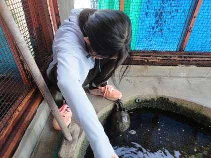 「調子が悪いのではないか」と、職員室に呼びに来てくれました。桜エビも煮干しもいつものように食べていたので、安心しました。