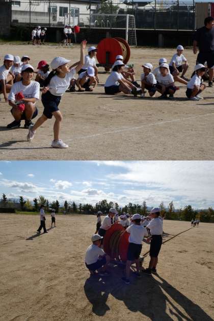 2年生対6年生は、玉入れ投げとバスケットボール投げで競いました。