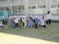 どんどん深くなっていく足湯(?)「ここ こうしよう」「もっと水を流そう」とみんなでイメージを共有していました。バケツで水をどんどん運びますが、これも体つくりにはとてもいい動きです。遊びながら運動しているというのが、いいですね。