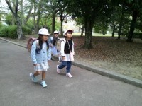 朝のあいさつ運動(児童会)とドングリ見つけたよ