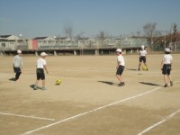 午後から4年生の体育はラインサッカーです。ボールをける,パスをする,ボールを足で...