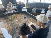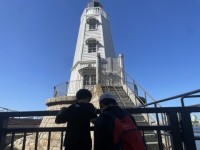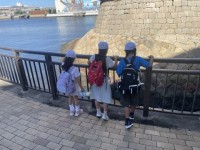 旧堺灯台で写真撮影!その後、海を観察するこどもたちです