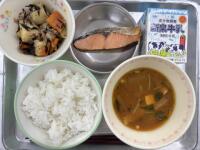 今日の給食はごはん・すき焼き風煮・さばのごまみそ焼・牛乳でした。さばのごまみそ焼...