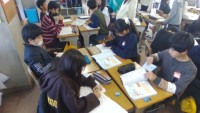 1組と2組は朝の会をしていました。3組はタングラム(シルエットパズル)をしていま...