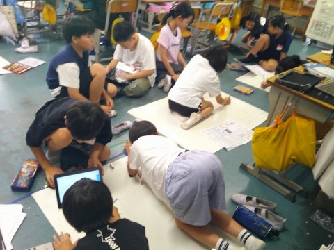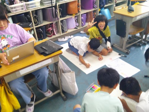 この日、4年1組では、班ごとに調べたことをまとめ終わりましたが、それをおうちの人や学校の人たちに見てもらうため、さらに大きな模造紙にまとめていました。