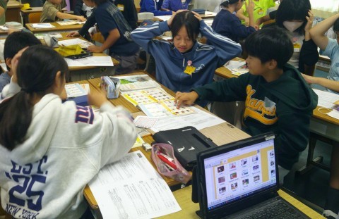 タブレットで調べる子、教科書をじっくり読む子、自分が調べやすい方法で学習していました。