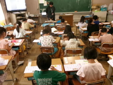 新出漢字の学習をしている様子です。漢字ドリルにていねいに書いていきます。
