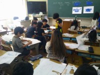 算数の学習の様子です。ひきざんのひっ算の方法を確認しています。
