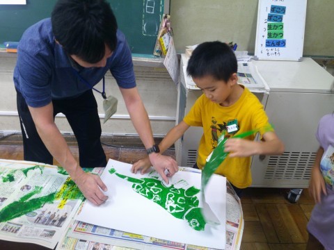 ローラーでインクを付けたあと、そぉっと画用紙を外すのがドキドキしますね。