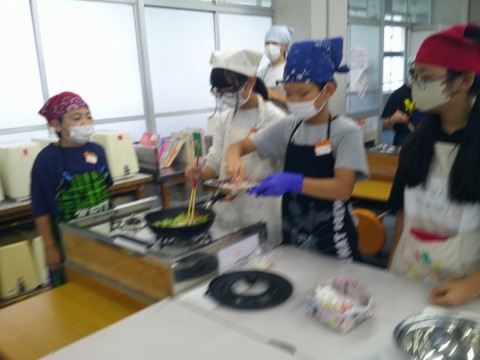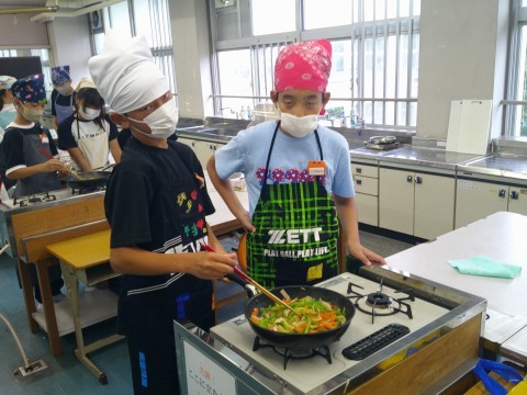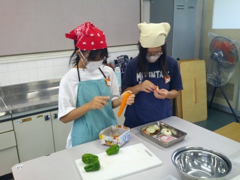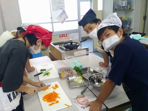 にんじんを短冊に切るのが難しそうでしたが,協力して慎重に切っていきました。