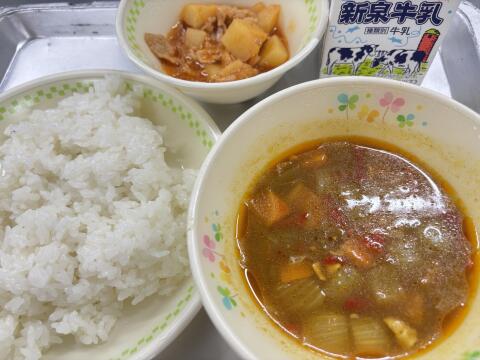 ごはん・カレモア・プアアのポリネシアンソース・牛乳です。