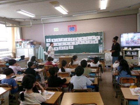 NSの先生と一緒に,アルファベットの発音を学習しました。しっかりと発音を聞いていました。