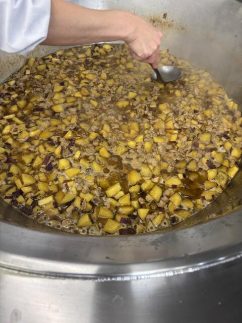 調理員さんが旬のさつまいもを煮崩れないように美味しく炊いてくれました。