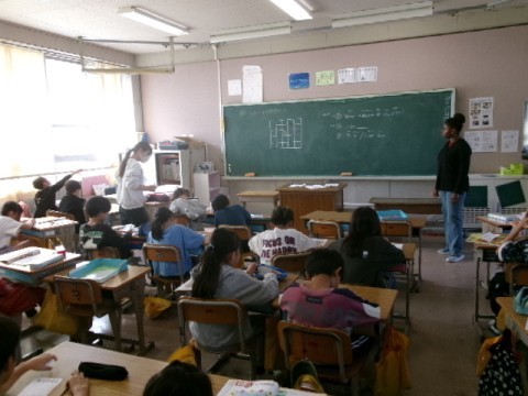 外国語活動の学習の様子です。NSの先生と一緒に学習しています。アルファベットビンゴを楽しんでいます。