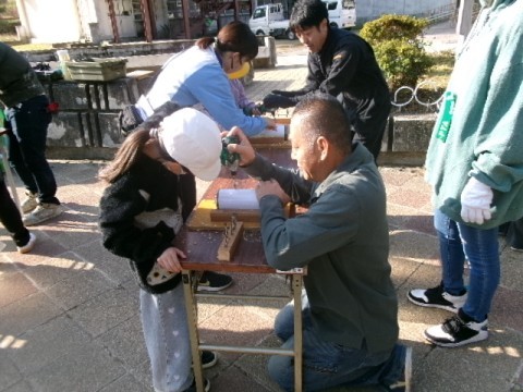 3年生は毎年地域の行事「竹あかり」に向けて,竹灯籠の制作をしています。今年も,地域の方々と一緒に作品を作りました。
