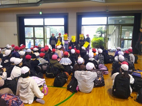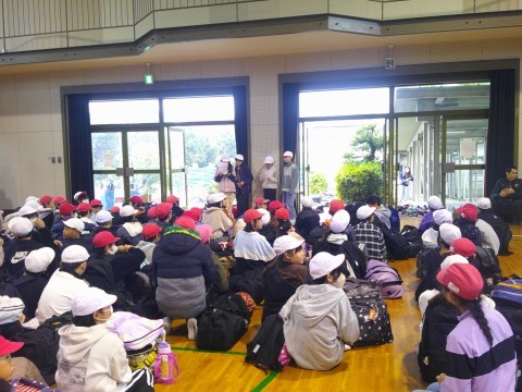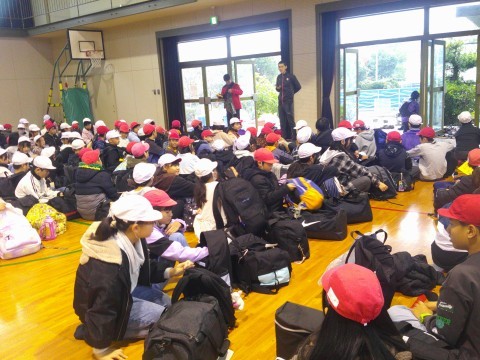 残念ながら雨の出発となりましたが、時間前には体育館にみんな集合しました。