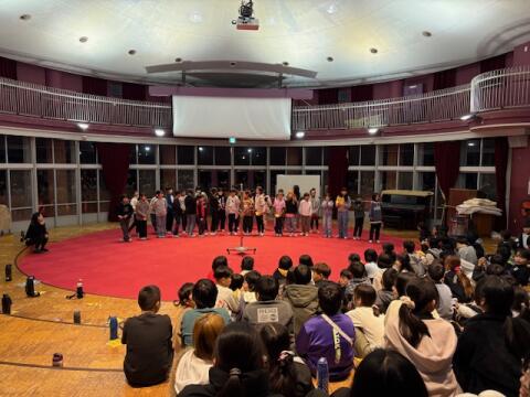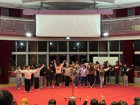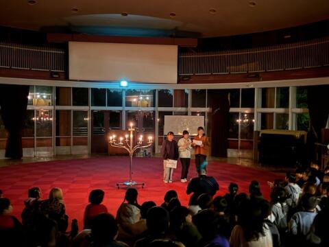 館内でキャンドルファイヤーをしました。それぞれの出し物を楽しみました。