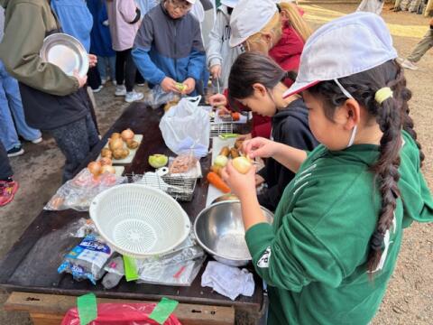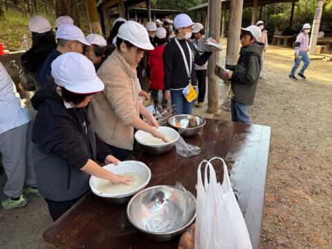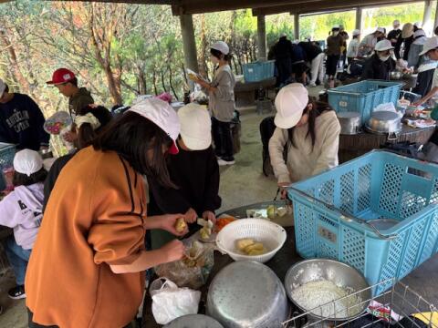 野外炊飯の様子です。それぞれの役割を頑張っています。
