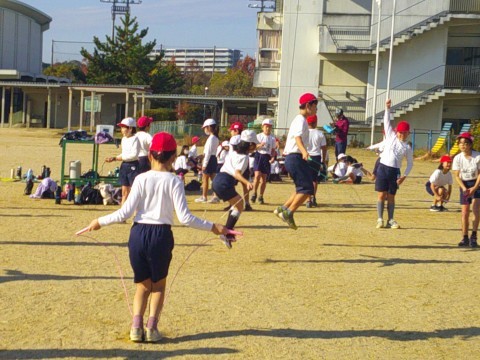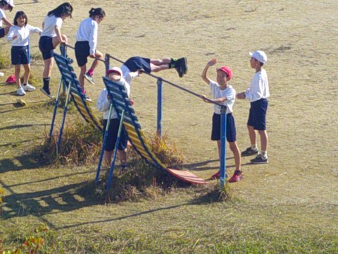 鉄棒、高跳び、美木多サーキット、縄跳びを順繰りにやっていきました。