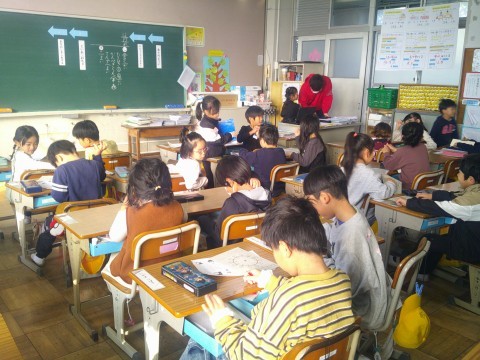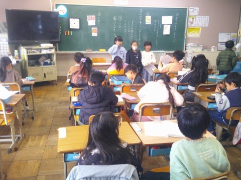 1組と2組は朝の会をしていました。